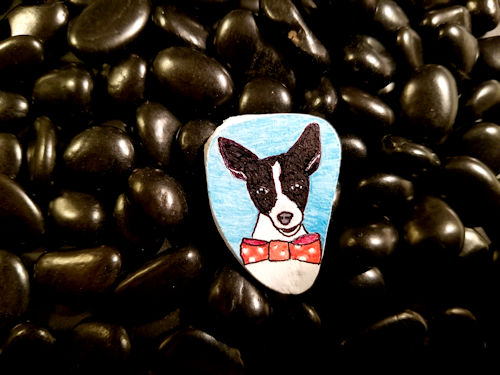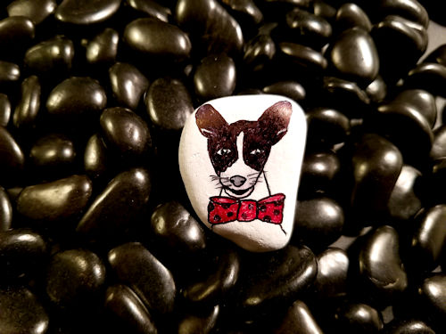 This was my first attempt at a custom portrait of a friend’s dog. It didn’t turn out looking like him 🙂 See 121 for the rock I gifted her.